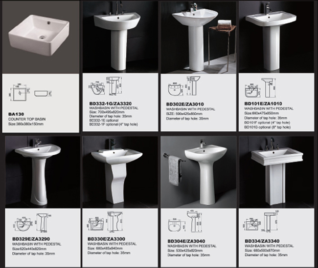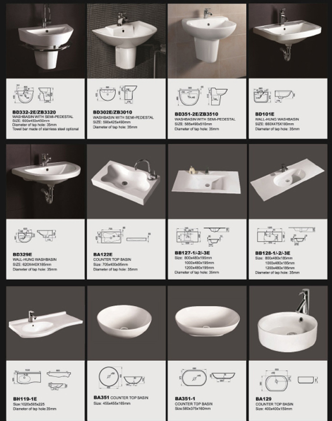 Following are a full range of ceramic and porcelain basins options for HKF America 's prefabricated bathrooms. Additional product options available upon request.